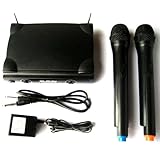 普通に使えます . 安いワイヤレスのシステムを探していて、これを見つけました。ちゃんとした商品だと、マイク2本とレシーバーで10万円ぐらいするので、これはありえない安さです。 周波数など細かい情報も分かりませんし、使い物にならなかったとしてもこの値段ならダメもと、ということで購入しました。結果は、特に音質にこだわらなければ普通に使えるということです。