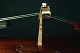 マイミュート MM-C チェロ用消音器 です。 弦楽器用消音器My Muteは音量を生音の約5分の1にします。これを使えば夜間でも隣室や隣人に気兼ねなく練習に集中できます。時間を気にせず練習ができる、理想の防音ルームが家庭にあるかのような錯覚に陥ります。 簡単かつ確実な取り付けができ、演奏中の脱落を防止します。櫛タイプのミュートやサイレンサーと違い、駒を傷つけません。 高級金メッキ仕上げ、重量約260g 定価10500円(税込み)。