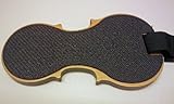 二つの穴の意味は . ストッパーを使っていたとしても、やはり傷つけたくない床の上、あるいは畳の上ではエンドピンのゴムを外してストッパーにぐさり、というのは正直気持ちよくないものです。多分手前の方の穴(木をえぐっているだけの穴)は、エンドピンのゴムをつけたまま固定したい向きではないでしょうか。で、向こうの方の穴(内側コーティング)は金属の先端を突き込む用ではないのかなと勝手に類推。本体の裏面には一面にゴムが張られていて、エンドピンが刺さった状態でのグリップ力は高いです。それでもストラップ(長さ調節可能です)がついているのは、演奏中に位置がずれたりしないようにという当然の配慮でしょう。あと形がお洒落なのも良いですね。
