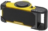 軽量・省電力・好音質。心地よい万能スピーカー . このあいだ某有名雑貨屋さんの店内で、心地よくジャズが流れていて、そこそこ重低音。何から流れているのかなと思い、探してみると、このスピーカーからでした。あまりに心地よかったので、直感的に自分に合うスピーカーなんだと思い、ためしに本体を持ち上げてみると、ビックリ!めちゃめちゃ軽い!自分はよく車のエンジンを切って、iPodをポータブルスピーカーにつないで聴くことが多いのですが、この軽さだと、持ち運びが苦になりません。しかも、単3エネループ4本使用で30時間以上も保ちます。いままでは、ソニーのTD60を使っていたのですが、音質は非常に良かったのですが、ズッシリ重いうえに形状が丸くて不安定で、しかも電池が頻繁になくなり(消し忘れも頻繁にやらかしてましたが。。)、電池交換も電池が取り出しにくく、コードが邪魔でフタもうまく閉まらず苦になっていました。その点、こちらのスピーカーは電池交換がすぐ出来るように電池ボックスが本体の上部についていて、とても楽です。フタも含めて全体的に安っぽいという他の方の評価もありますが、軽さに勝るものはありません。形状自体は良いので、お気に入りのステッカーでも貼ればオシャレでカッコ良くカスタマイズできます。取っ手もついてて、持ち運びが多い屋外使用ではとても重宝します。また、電源ONのLEDも照度が高く、青色でカッコイイし目立つので、消し忘れも少なそうです。軽量・省電力・好音質素直な音が出るので、気軽に何時間でも聴いていられます。ほんとにこのスピーカー、買って良かったと思います。音楽鑑賞がとても楽しくなりました。